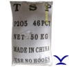 TRIPLE SUPER PHOSPHATE TOTAL P2O5 : 46% min. WATER SOLUBLE P2O5:37%min. FREE WATER: 5% max. FREE ACID : 5% max. SIZE(1-5MM) : 90%min. COLOR : DARK GREY